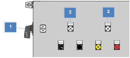 2. Vérifier que le voyant 2  « 400VAC ON » est allumé. La partie commande est également alimenté, les composants d’automatisme démarrent. Vérifier que le voyant  3  « 24VDC ON » est allumé.
