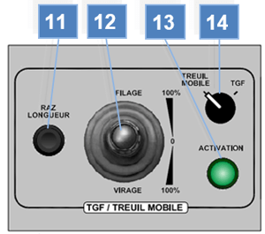 Utilisez le « Joystick »  12  apres avoir sélectionné Treuil mobile avec le sélecteur  14 .