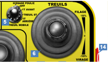 Sélectionnez le mode de marche MAINTENANCE à l’aide du sélecteur  4  du coffret électrique.Le voyant  10  s’allume pour indiquer que la Boite à boutons est active. Utilisez les boutons Filage ou Virage correspondants au mouvement souhaité.